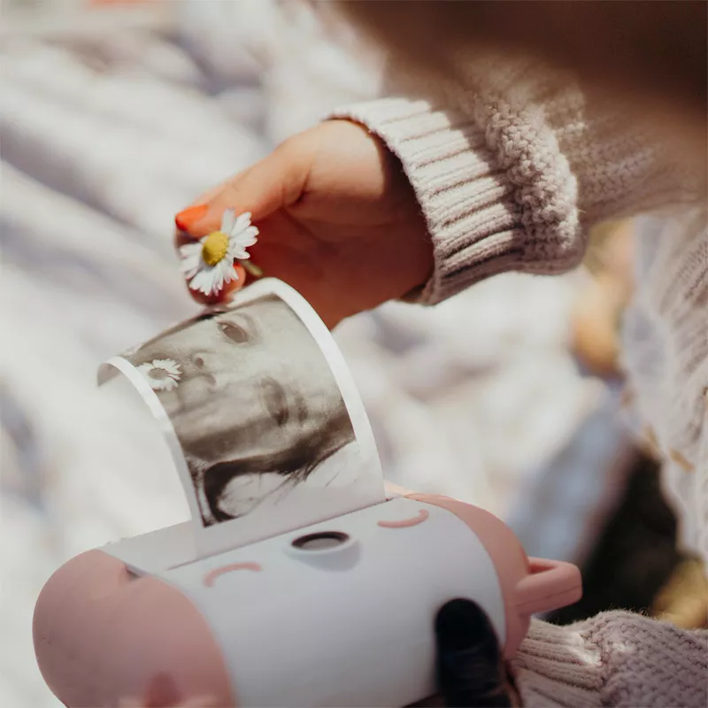 - Respetuosa con el medioambiente: La impresión térmica permite imprimir sin tinta, reduciendo residuos y haciendo cada foto aún más especial y ecoamigable.