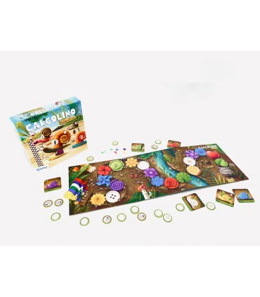 - Contenido: 6 figuras de caracol de madera, 6 fichas de caracol, 4 dados de seis colores, fichas de puntuación, 1 tablero de juego