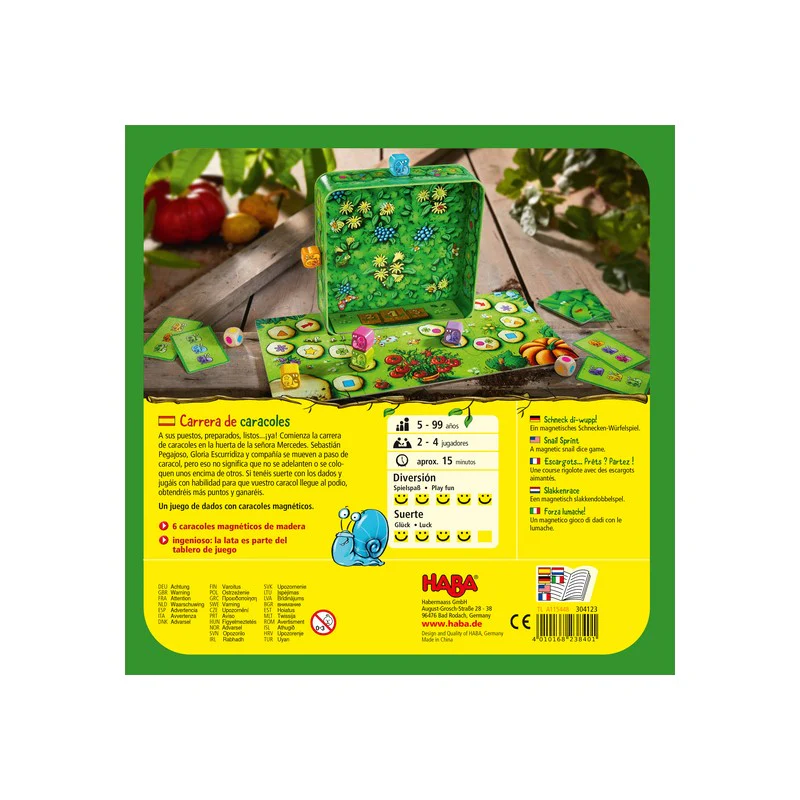 🎲 ¡Magnéticos Caracoles Deslizándose por la Huerta! Descubre el fascinante mundo de la velocidad caracolera con caracoles magnéticos. En cada tirada de dados, tus astutas criaturas se desplazarán a paso de caracol por el tablero, ¡incluso por la tapa de lata que forma parte del juego!