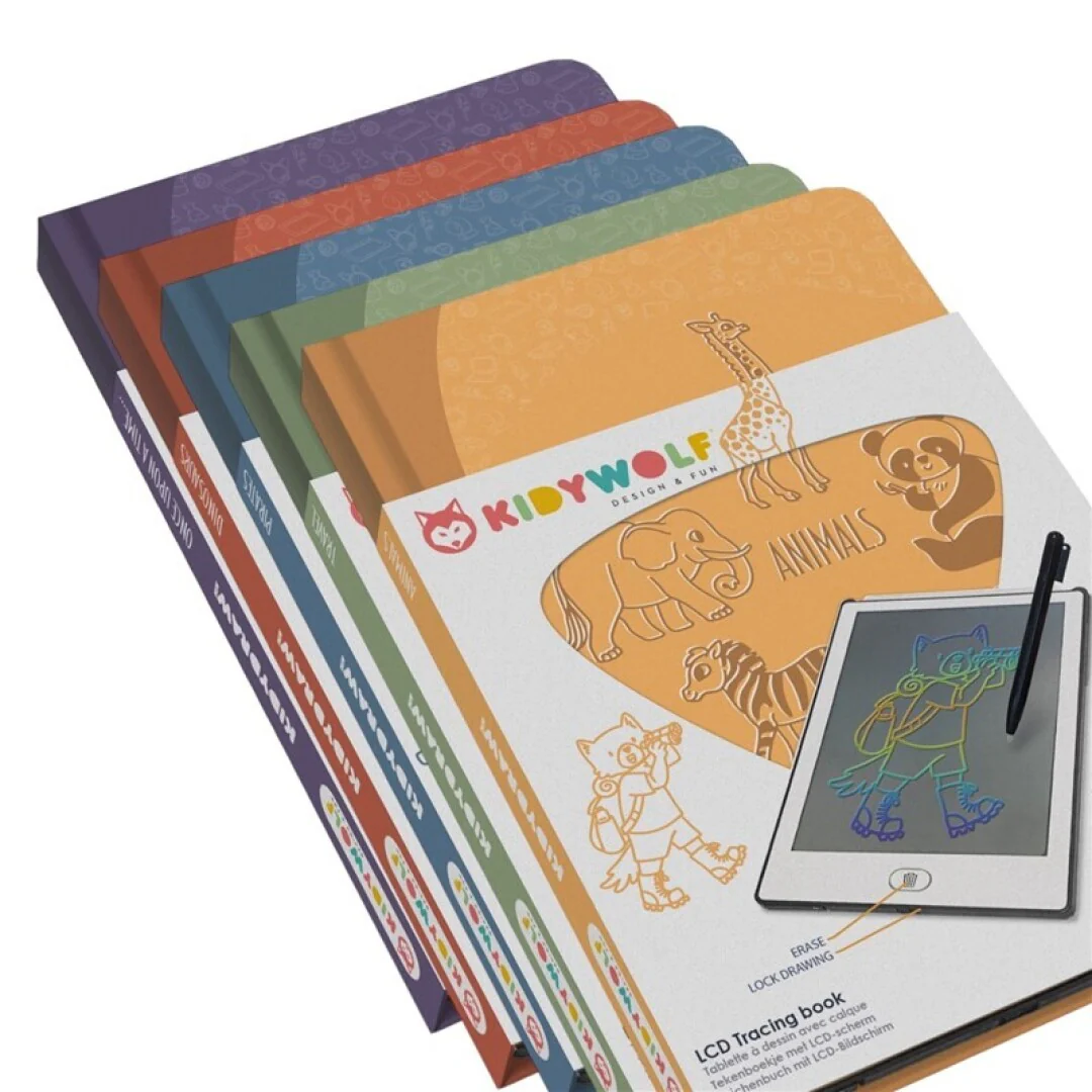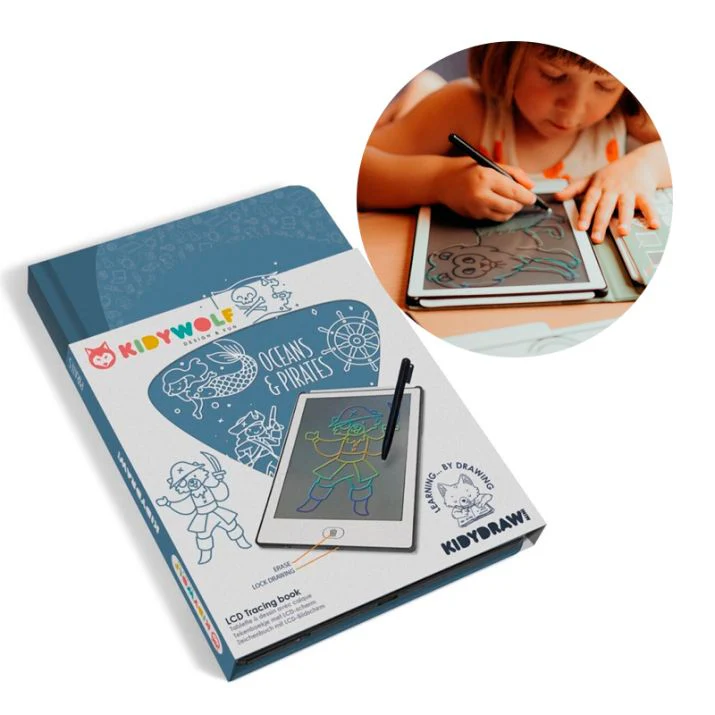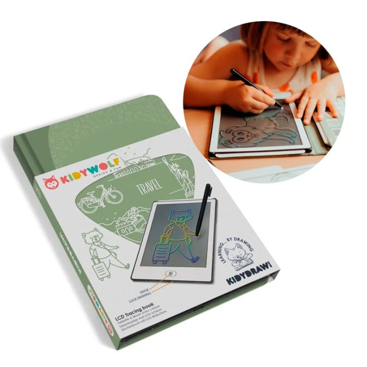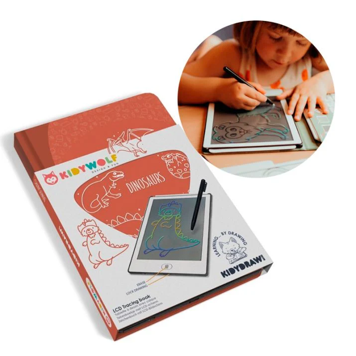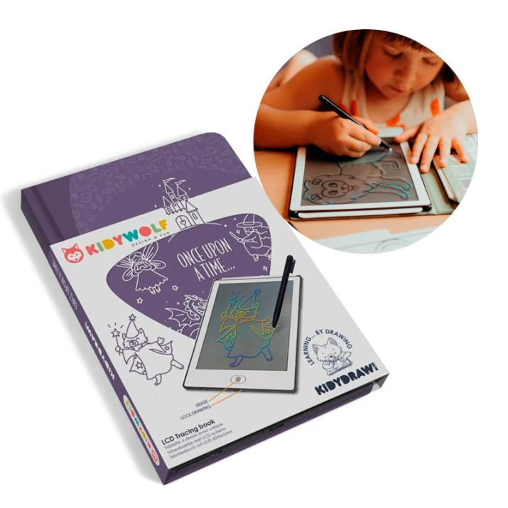 La Kidydraw Mini de Kidywolf es una tableta LCD portátil ideal para que los niños puedan escribir, dibujar y calcar sus dibujos favoritos en cualquier lugar. Con una pantalla de 8,5 pulgadas, un lápiz óptico, y 30 imágenes de diferentes motivos para trazar, es perfecta para fomentar la creatividad, el aprendizaje y la diversión en cualquier momento y lugar. ¡Fácil de usar y de transportar, es el compañero ideal en viajes y ratos de espera!
